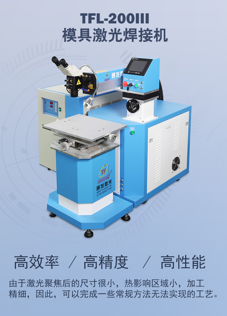 TFL-200Ⅲ型模具激光焊機(jī)是通發(fā)激光公司在TFL-180Ⅲ的基礎(chǔ)進(jìn)行了改良,采用通發(fā)自主研發(fā)的二代精密單燈電源為燈泵浦驅(qū)動(dòng)電源,配置觸摸屏,操作更方便。主機(jī)具備激光頭手搖升降與工作臺(tái)按鈕電動(dòng)升降實(shí)現(xiàn)焊接不同厚度模具的激光焊加工。本款機(jī)型更適用于各類高精密注塑模具激光補(bǔ)焊,精密塑膠模具零件激光修補(bǔ),塑膠模具鈹銅零件激光燒焊;可對(duì)模具使用過(guò)程中出現(xiàn)的磨損進(jìn)行激光修復(fù);對(duì)機(jī)械加工失誤、電火花加工失誤,模具減膠設(shè)計(jì)變更等需要對(duì)模具修改,起到關(guān)鍵的作用,可彌補(bǔ)因加工失誤造成的巨大損失。