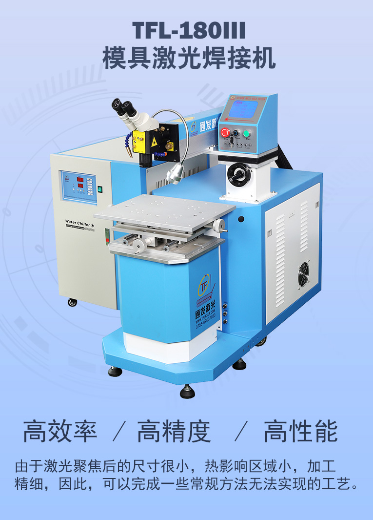 普通型模具激光焊機(jī)TFL-180Ⅲ是通發(fā)激光公司的模具激光焊機(jī)中銷量較大的傳統(tǒng)型,配置激光頭手搖升降與工作臺(tái)按鈕電動(dòng)升降實(shí)現(xiàn)焊接不同厚度模具的激光焊加工。本系列機(jī)型適用于各類精密注塑模具激光補(bǔ)焊、壓鑄模具激光修補(bǔ)焊接;同時(shí)也適合鑄件沙孔激光修補(bǔ)、模具磨損激光修復(fù)、過切加工等的激光修補(bǔ);各類金屬結(jié)構(gòu)件激光焊接加工、金銀首飾激光焊接加工。